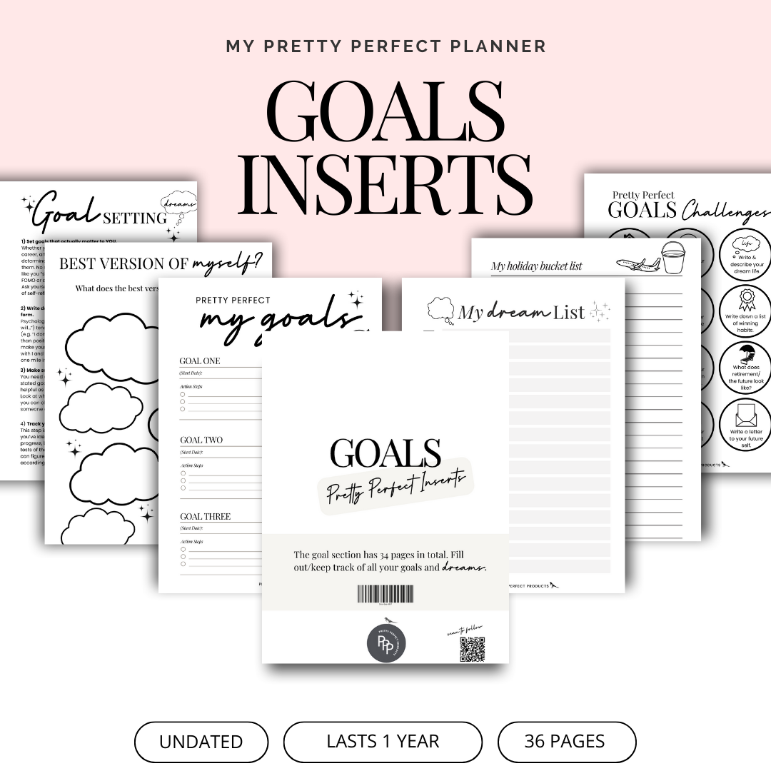 Turn your dreams into plans with our Goals Inserts, designed to help you set clear intentions, track your progress, and stay focused on what matters to you.