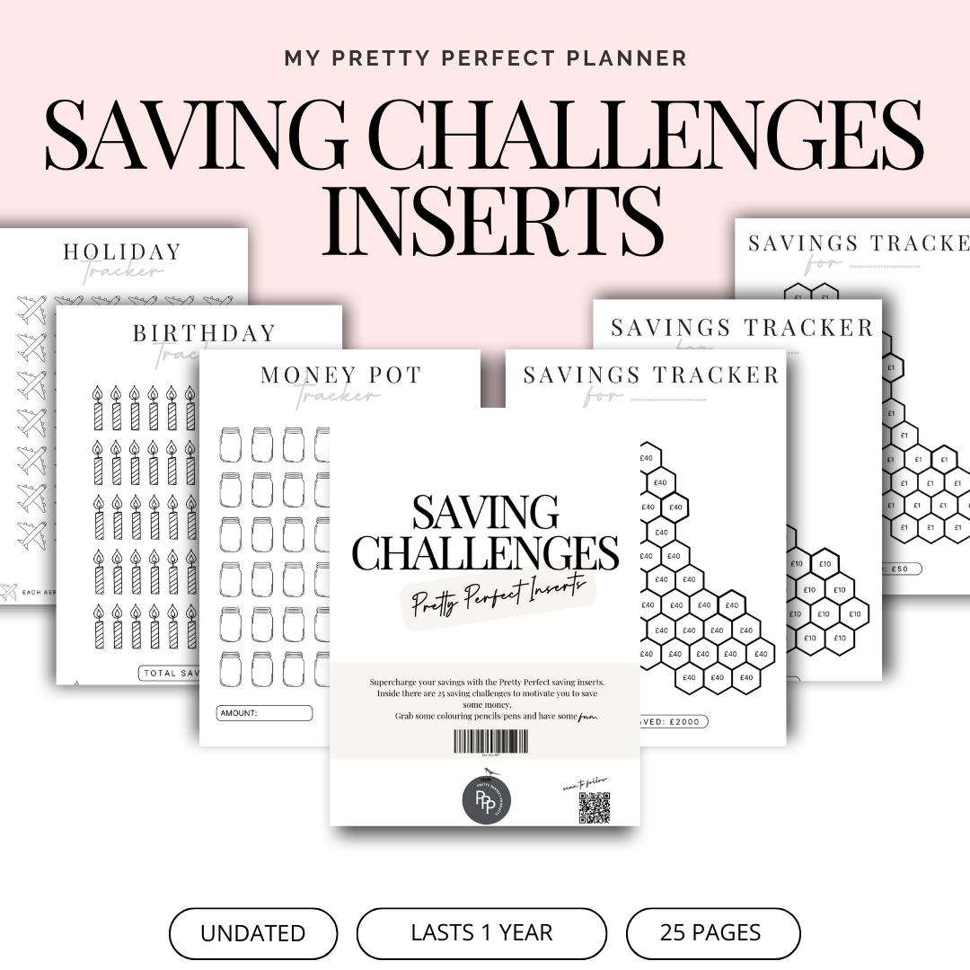 This refill pack includes 25 guided savings challenges for holidays, Christmas, birthdays, self-care, date nights, and space to create your own!